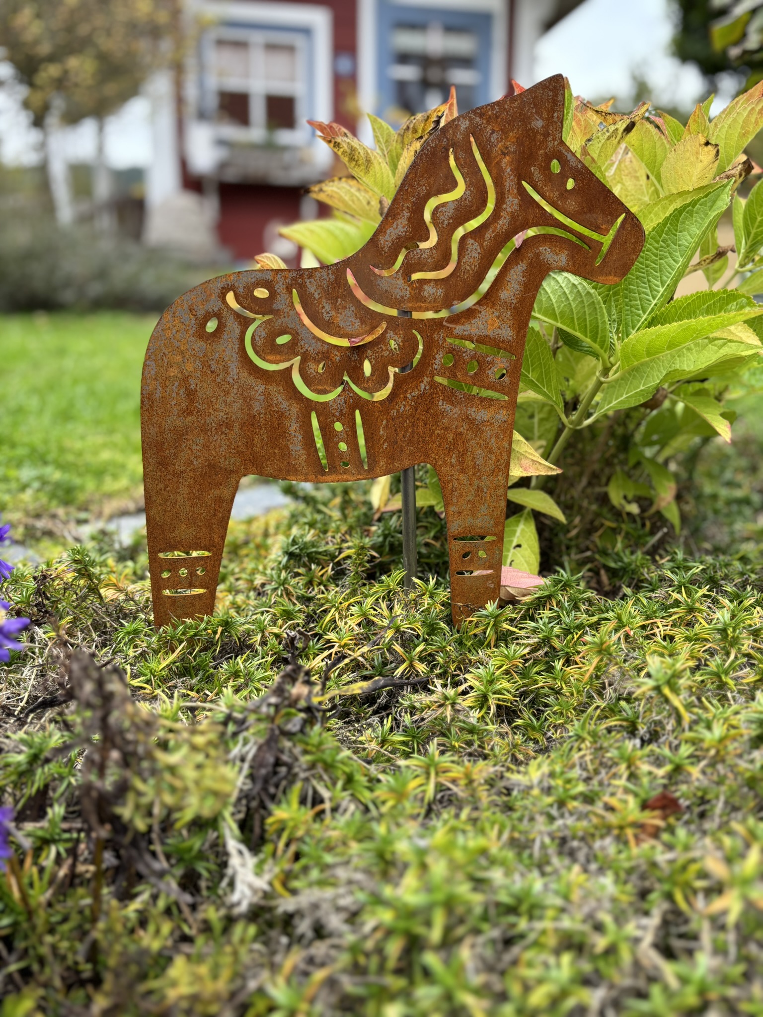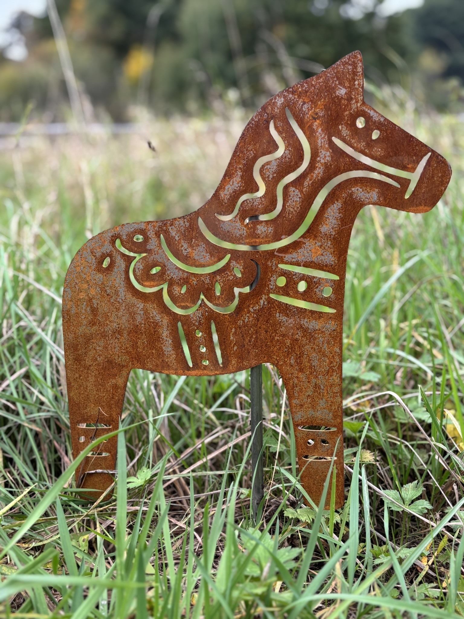 Das Dala Pferd stammt ursprünglich aus der schwedischen Provinz Dalarna und wurde dort als Glücksbringer aus Holz geschnitzt. Heute ist es ein weltweit bekanntes Symbol für skandinavische Handwerkskunst und Lebensfreude. In Stahl verewigt, verbindet es Tradition mit Moderne – ein Hauch nordischer Kultur, der deinem Garten Charakter verleiht. Besonders in Kombination mit natürlichen Materialien wie Holz, Stein und Pflanzen entfaltet es seine ganze Wirkung.