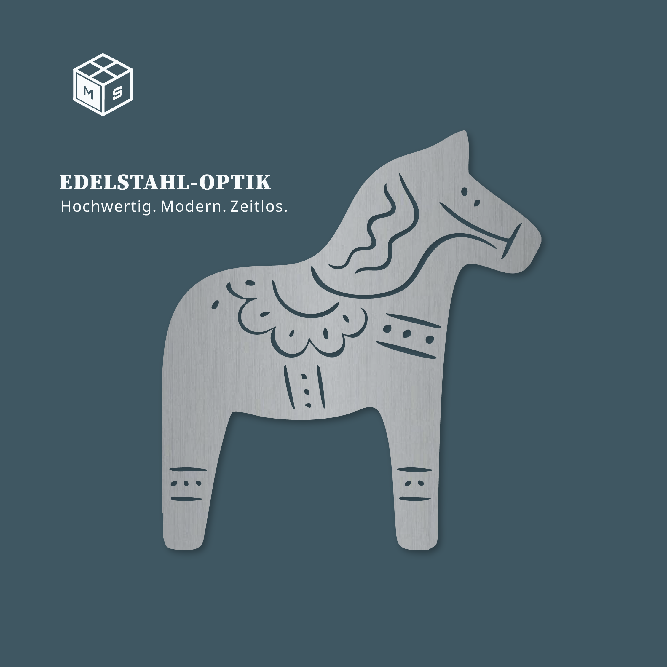 Erhältlich in zwei hochwertigen Varianten: Cortenstahl mit natürlicher Rostpatina oder Edelstahl in glänzender Eleganz. Das Dala Pferd aus Cortenstahl entwickelt mit der Zeit eine charaktervolle Oberfläche, die sich harmonisch in die Umgebung einfügt. Die Edelstahlvariante hingegen setzt moderne Akzente – klar, edel und pflegeleicht. Beide Materialien sind wetterfest und langlebig, gefertigt mit höchster Präzision und Liebe zum Detail.