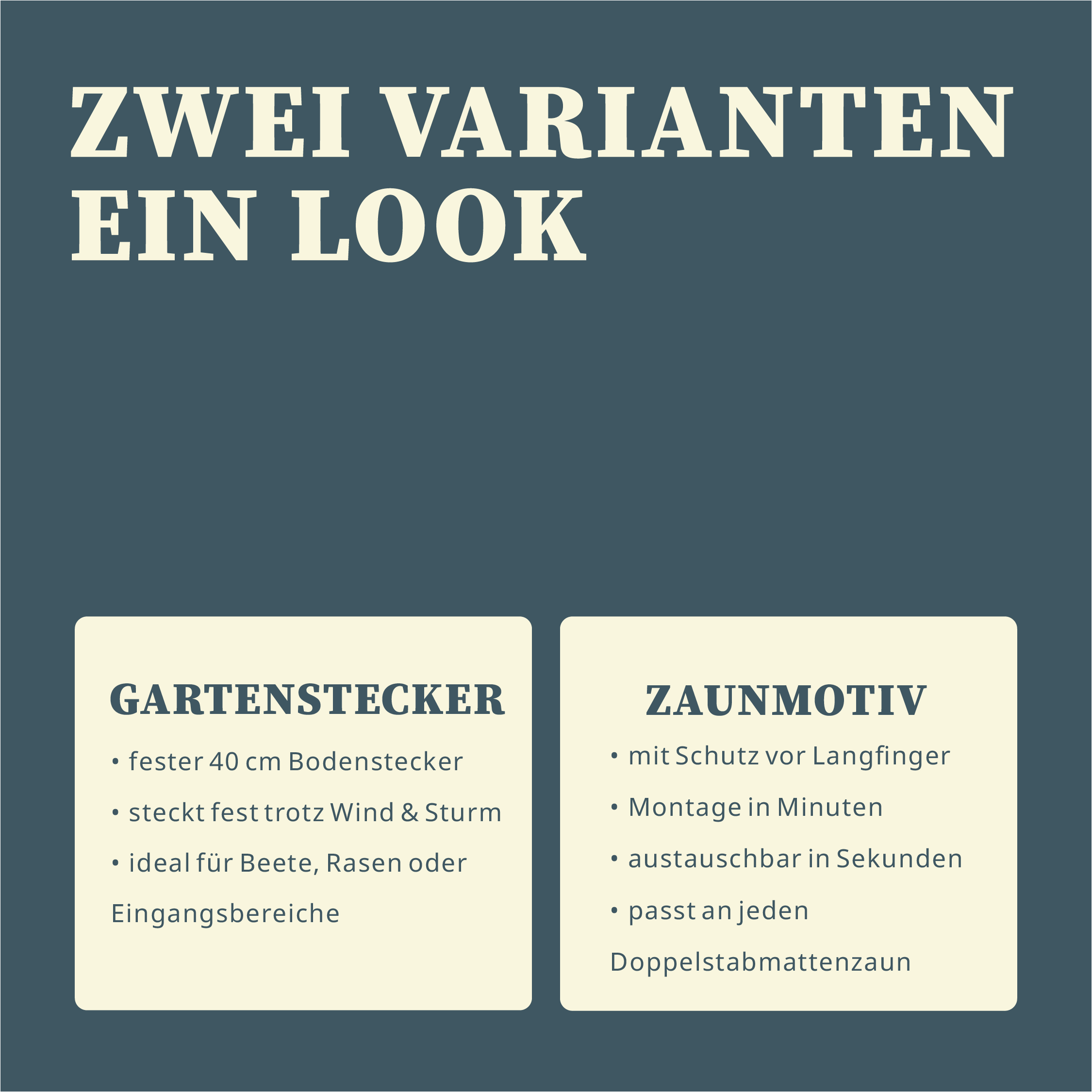 - Flexible Montage: Gartenstecker oder Zaunmotiv